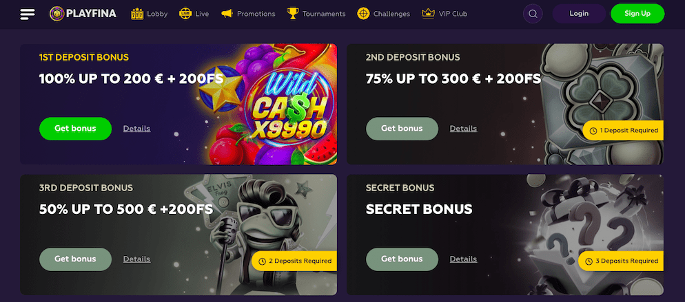 But the real magic of Playfina lies in its bonuses and promotions. From generous welcome offers to exciting no deposit bonuses, Playfina rewards players for their loyalty and keeps the excitement going.